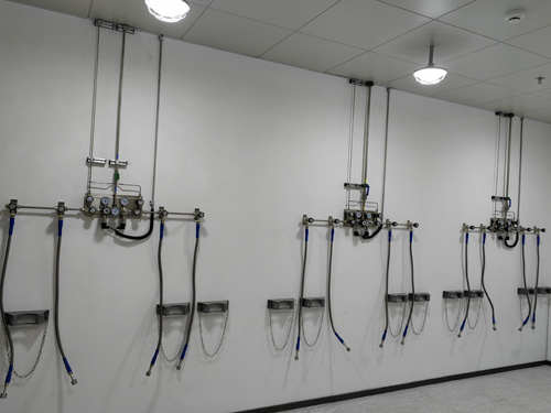 1.氣瓶間內負壓上下調整開關面板與檢測酒店內的氣路最終互相適用SS316LBA管做好鏈接,管線內界面光滑整潔度為Ra<0.4umBA級管線。